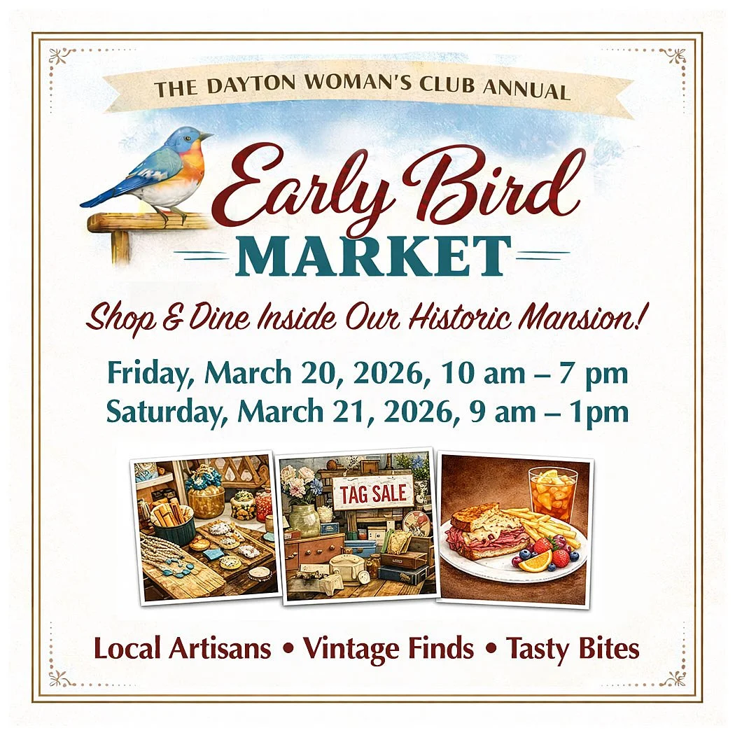 The Dayton Woman’s Club is an integral part of the community and Dayton’s history. Since our founding in 1916, our purpose has remained the same: to serve as a place for education and culture, and to bring people together for activities that strengthen and empower our community. As a registered 501(c)(3) nonprofit organization, we welcome everyone to visit our historic landmark and join us as members.