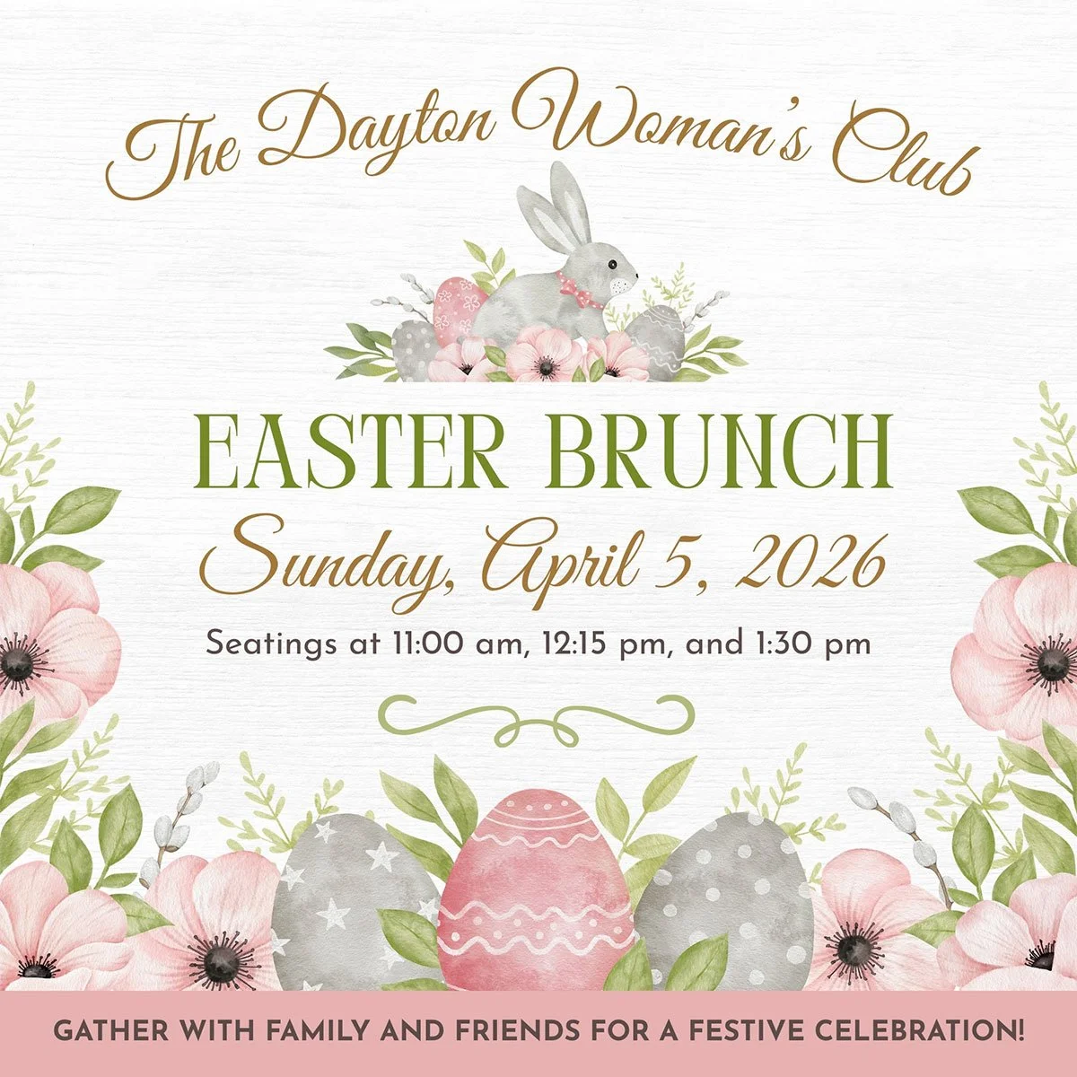 Celebrate Easter with a delightful brunch at The Dayton Woman’s Club! Enjoy a delicious buffet-style meal in our historic Victorian mansion, a cherished landmark in the heart of Dayton.