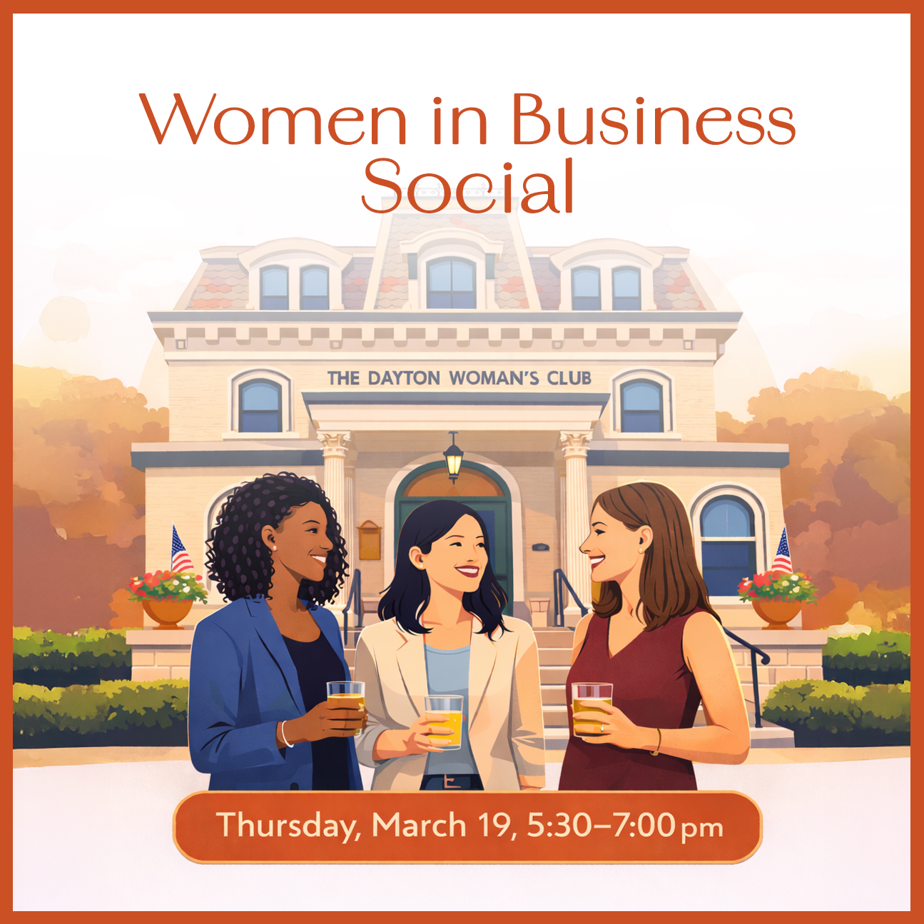 Join us for the inaugural Women in Business Social on Thursday, March 19, from 5:30 to 7:00 pm, as we celebrate Women’s History Month and begin a new tradition designed to foster genuine connections and shared experience among women who are shaping business, leadership, and community across the Dayton region.